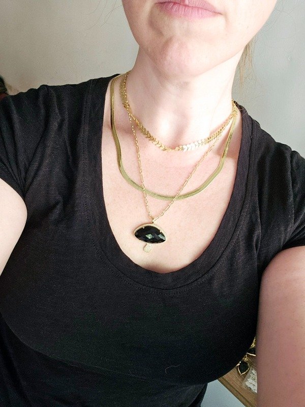 El collar tiene un largo final de 50 cm, aunque se puede ajustar a otras medidas según tu preferencia. Es perfecto para llevar solo o combinado con otras cadenitas, permitiéndote crear un estilo único y personal.