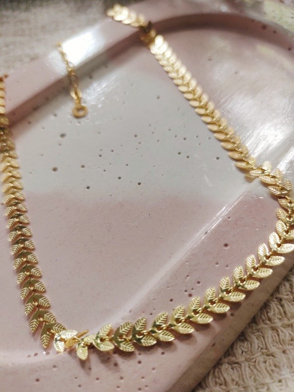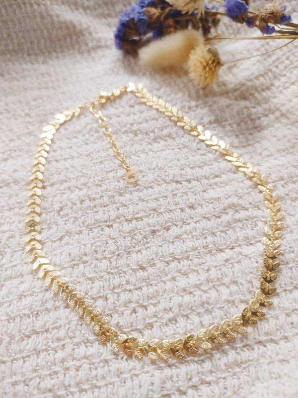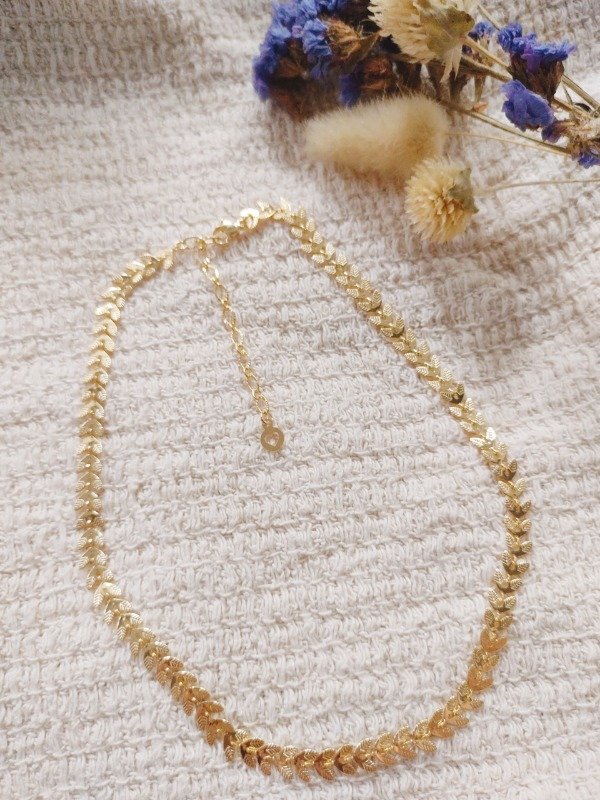 Collar de oro laminado con forma de hojitas caladas y dije final con forma de ♥