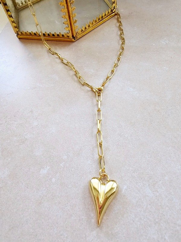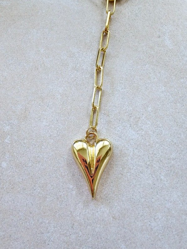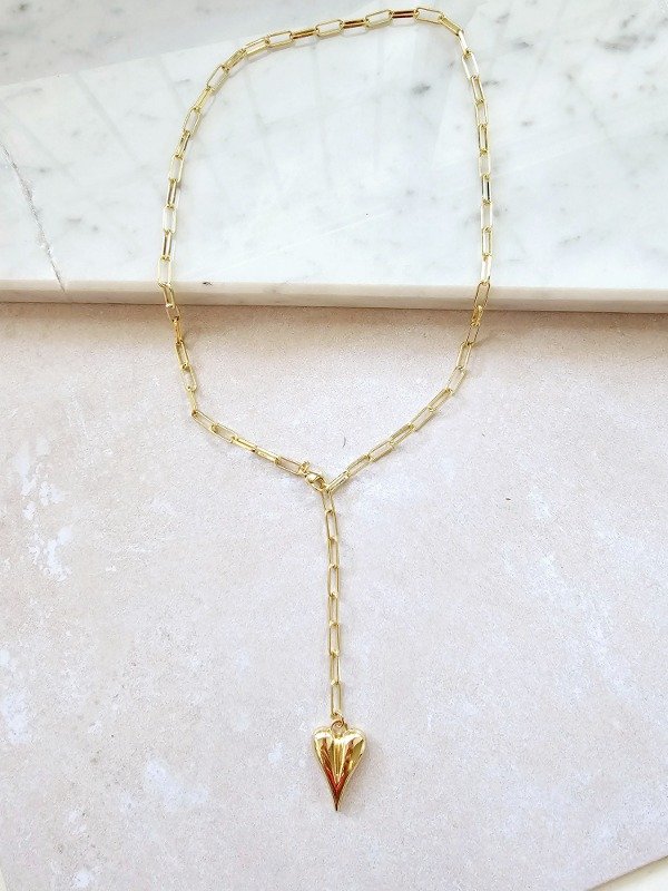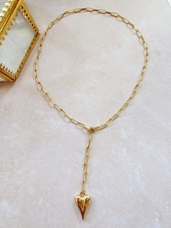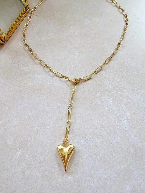 Collar regulable de oro laminado con eslabones de 10 mm x 4 mm con dije 3D hueco con forma de corazón