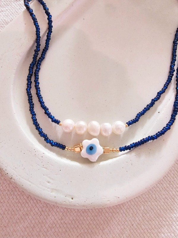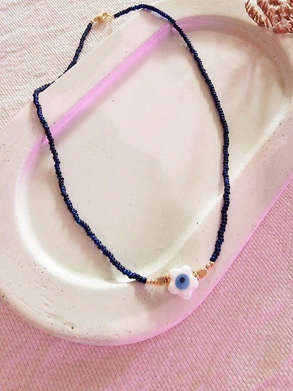 Collar con mostacillas checas calibradas, dije de cerámica y terminaciones en oro laminado