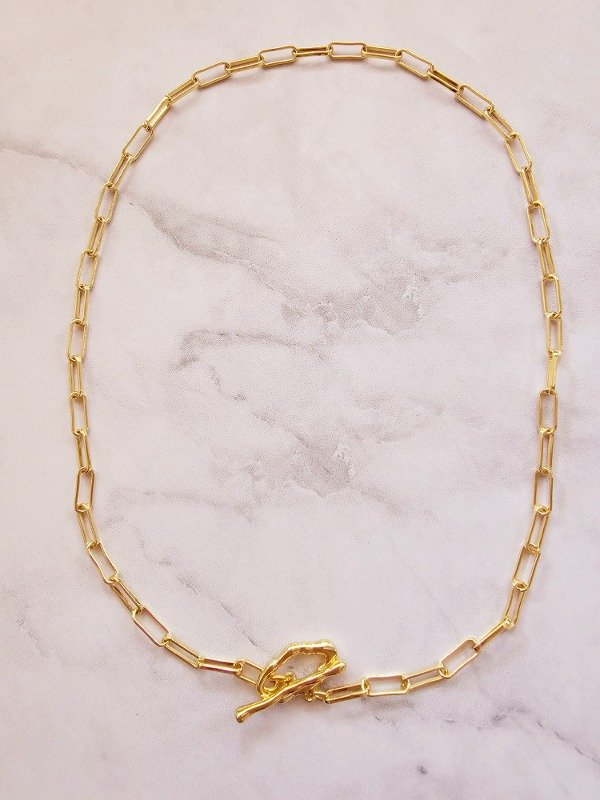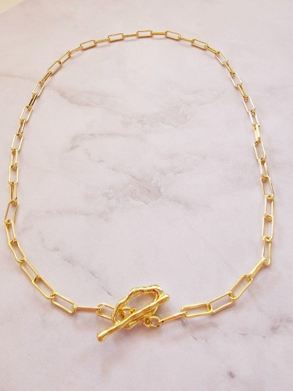Collar con cadena de oro laminado rectangular de 10mm el eslabón, broche de 1,8cm. Todo en oro laminado hipoalergénico. Se prende por delante
