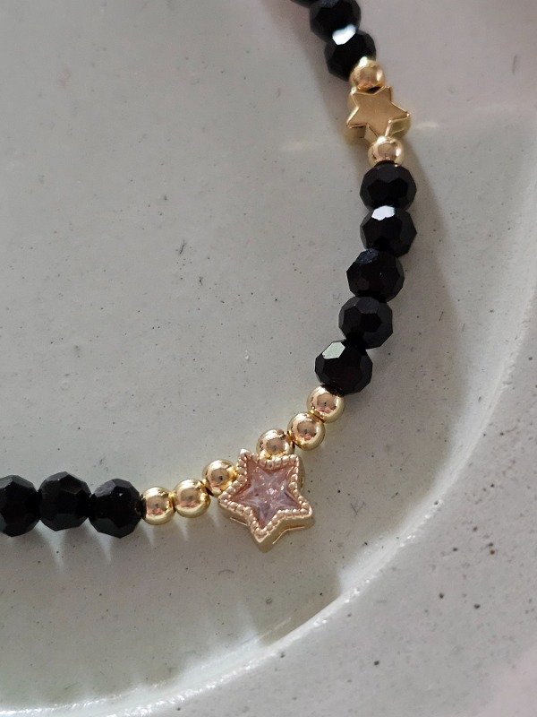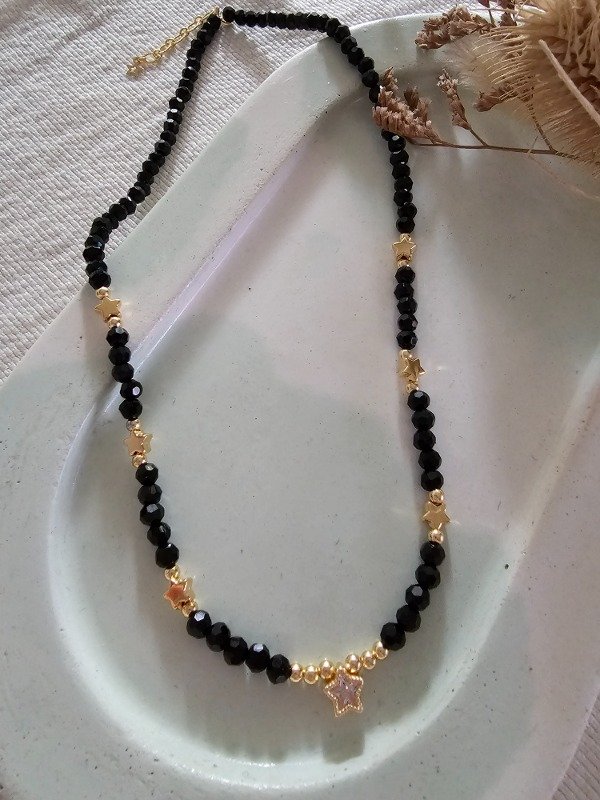 Collar con cristal de roca de 4 mm, dije de estrella con circonia traslúcida y fornitura de oro laminado