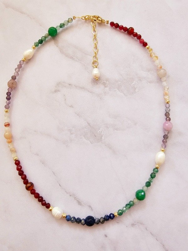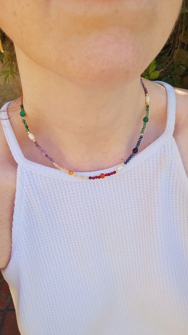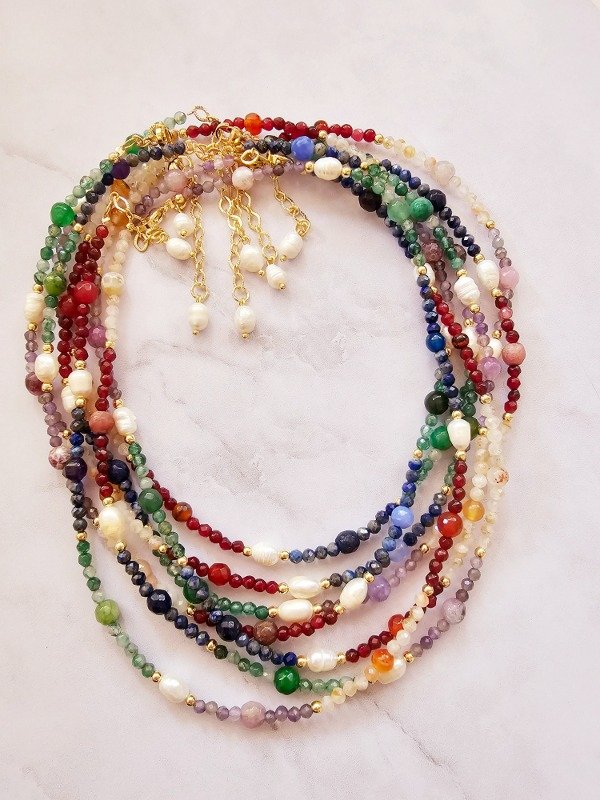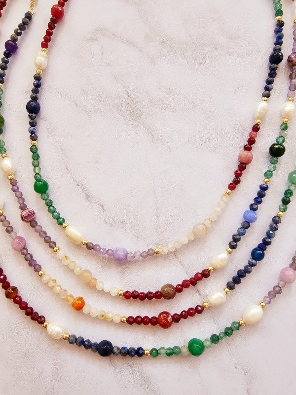 Las piedeas al ser naturales son todas diferentes, ningún collar es igual a otro y la disposición de colores va variando.